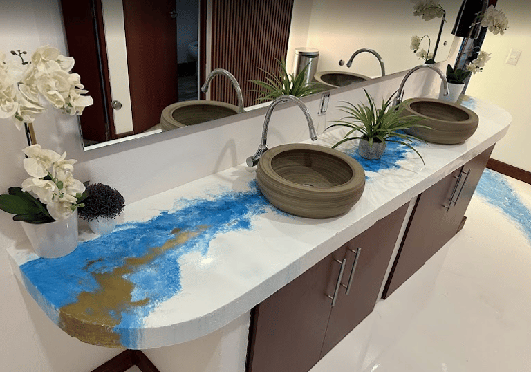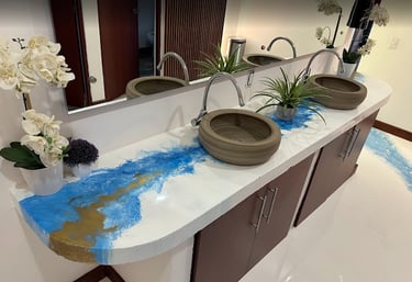Creaciones únicas como mesas, barras, cubiertas, accesorios personalizados y placas decorativas (tipo mármol, murales o paneles).